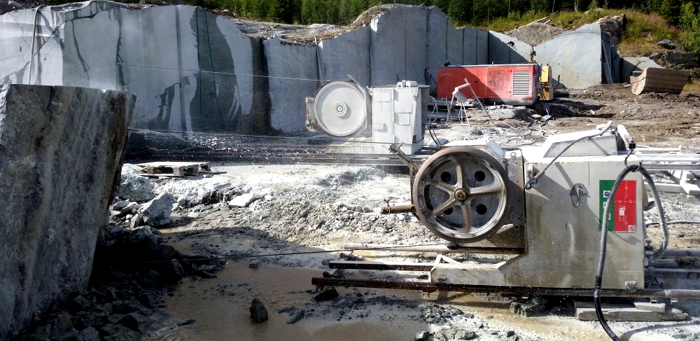 - Desmonte de rochas com uso de maquina de fio diamantado
